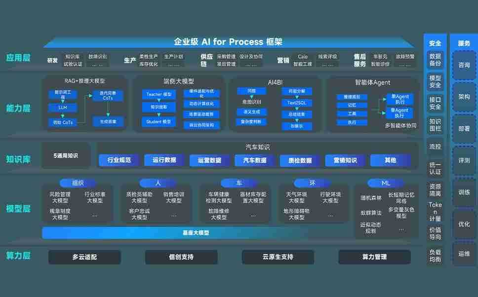 征途国际问学智车解决方案是一套基于AI技术的汽车行业智能化系统,,,,覆盖从底层算力到顶层AI应用的全栈方案。。方案由算力层、、、模型层和应用层组成:算力层,,,方案支持多种一体机配置,,具备云端灵活部署、、、多云适配以及动态优化计算资源的能力;模型层,,征途国际问学平台版提供了企业级AI应用一站式构建与管理平台,,,,支持基于后训练强化技术的汽车企业专属模型的训练、、、、评测和运营;应用层,,,征途国际问学DeepSeek版提供包括超级员工、、智能招采、、智能营销、、、智能客服、、、AI for BI等一系列解决方案,,,可助力汽车行业实现数字化转型,,让管理更智能、、、响应更敏捷。。。。